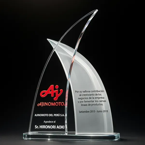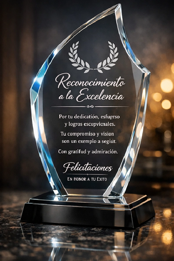 Trofeos de vidrio premium y placas personalizadas con tu marca. Diseños exclusivos, grabado perfecto y entrega puntual garantizada. Selecciona tu favorito y solicita cotización sin compromiso ahora.